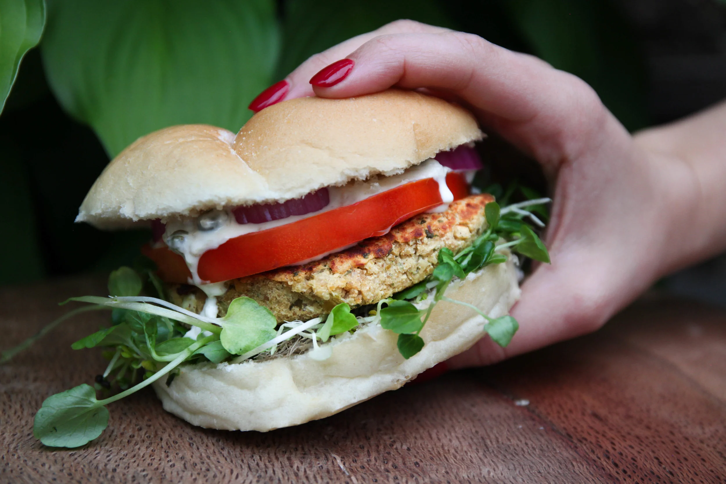 4. Heat up a skillet with 1 Tbs of grapeseed oil. Add the patties one at a time & allow them to cook 10 minutes on each side. Serve with the special sauce, lettuce, onion, tomato & pickles!